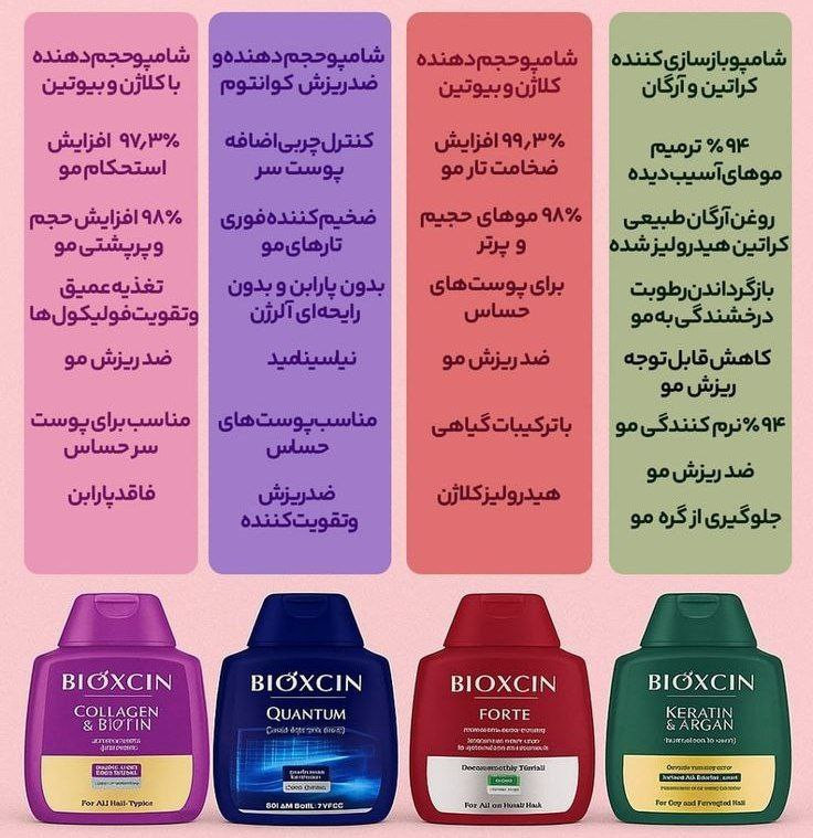 - محصولات مراقبت از مو مانند شامپو، ماسک مو، روغنها و تقویتکنندهها برای انواع مو
